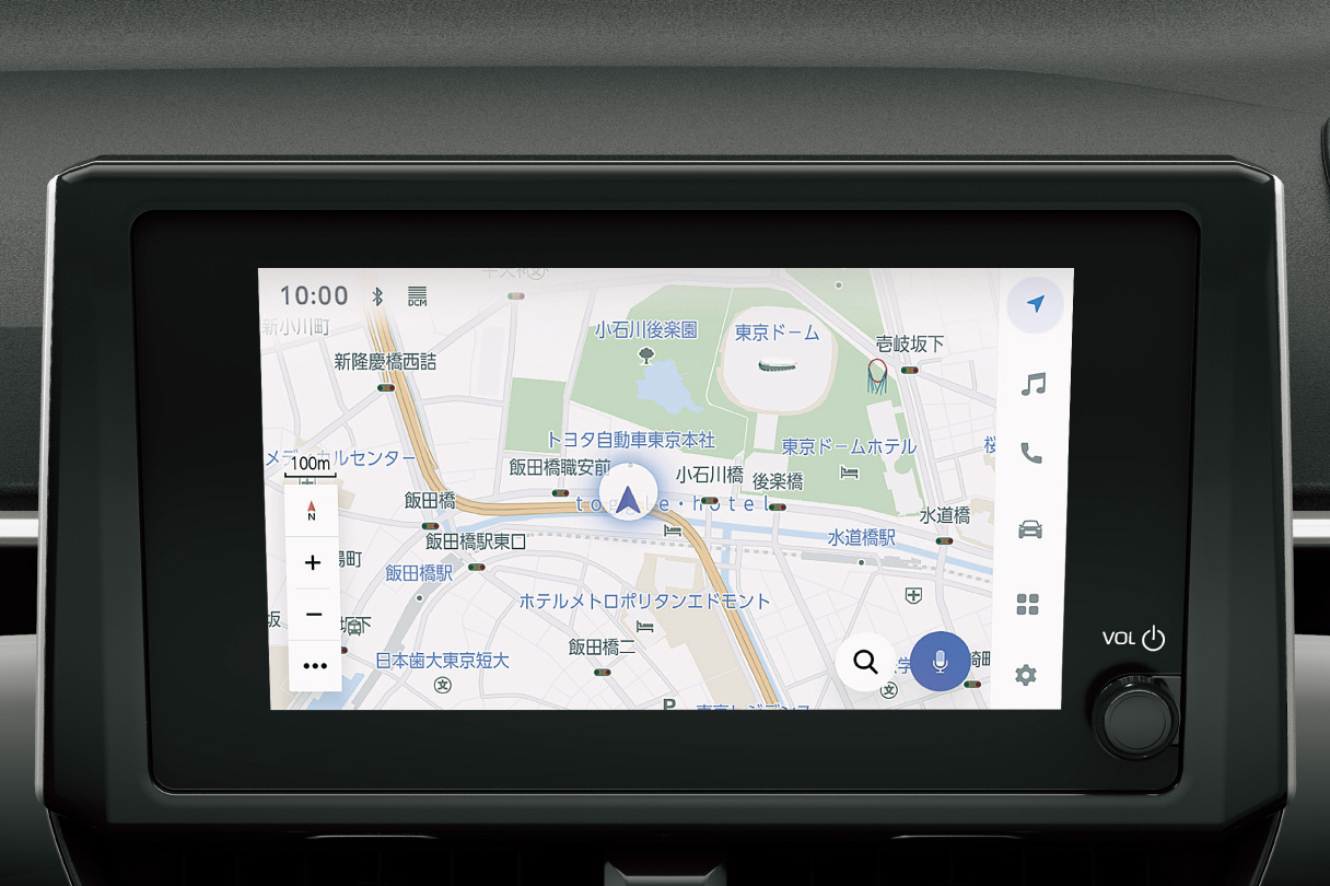 大画面10.5インチの大きく鮮明な地図と高コントラストの美しい映像がご覧いただけます。センター通信型コネクティッドナビの対応に加え、通信が途切れて万一保持する地図情報の外に出てしまった場合でも、続けてナビ機能が利用できる車載ナビ機能も搭載しています。